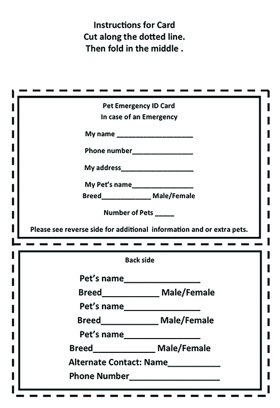 My goal is to provide information to help everyone with animals be prepared and reduce stress before an emergency. This information herein is a guideline only. Make sure you contact your Veterinarian for all questions and medical advice.