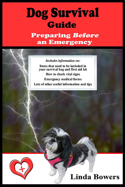 “Dog Survival Guide: Preparing Before An Emergency” is a source of information for putting together a survival and medical bag for your dog. You will find contact forms that can be copied and filled out. There are tips for keeping your fur babies/dog(s) safe before or during and emergency and much more.